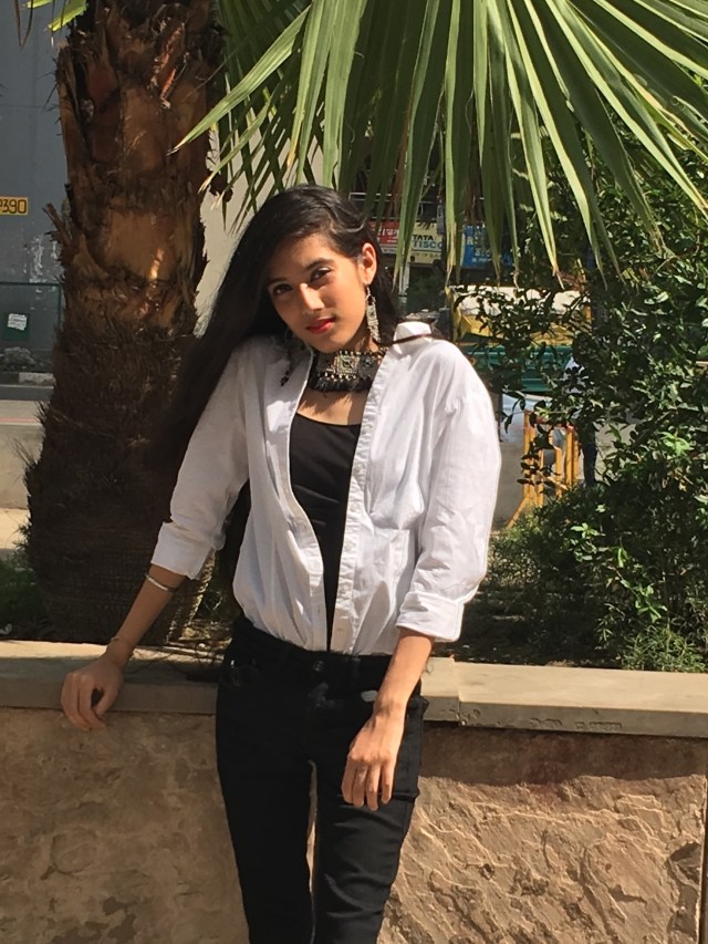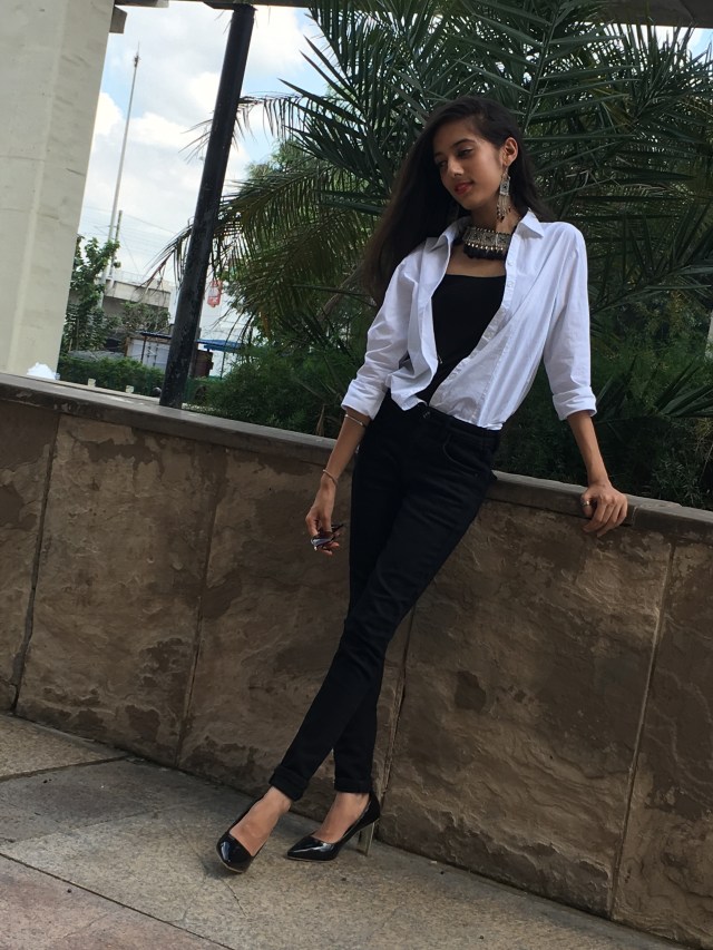 The combination of black and white gives an amazing look. I hope you guys are with me on this point. So keeping this in mind I have made this outfit. I have utilised my clothes. I’am wearing black specti and have tuck in my white shirt in my jeans. To give a unique look I’am wearing this beautiful choker and earings. Just because of this set my outfit is giving an elegant look.
